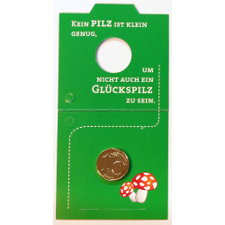 Glückscent mit 24 Karat vergoldet und auf eine Karte mit Motiv von 55 mm x 55 mm geklebt. Klappkarte auf Innenseite aufgedrucktes Zitat oder Spruch zum Thema Glück. Verschiedene Motive zur Auswahl.